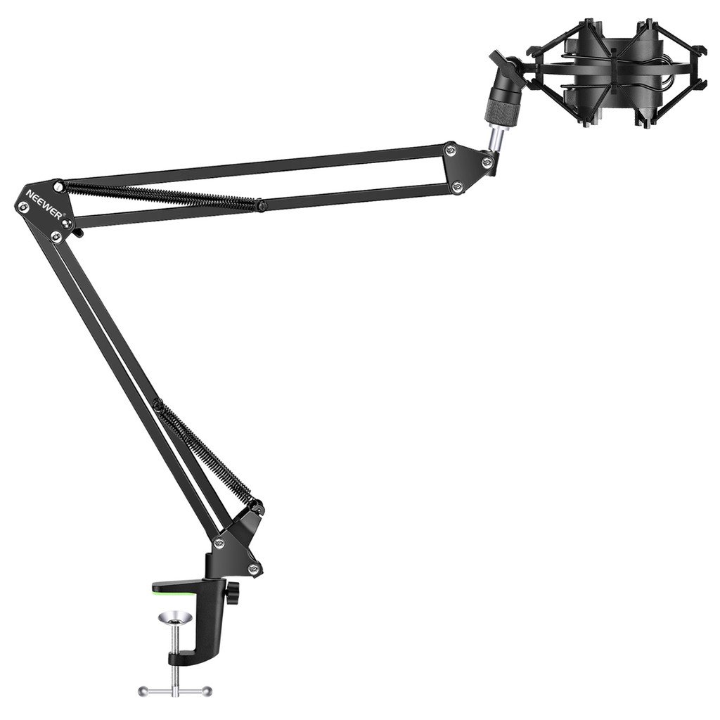 Neewer adjustable microphone suspension boom scissor arm stand max load 1 kg compact mic stand made of durable steel for radio broadcasting studio voice over sound studio stages and tv stations.