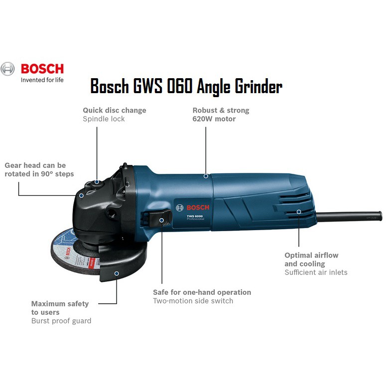 Bosch tools angle grinder gws 060 handy compact 670 watts of power powerful and reliable tool for tradesman high value to money powerful 660w input power maximum safety come with burst proof guards and 2 motion switch handy compact.
